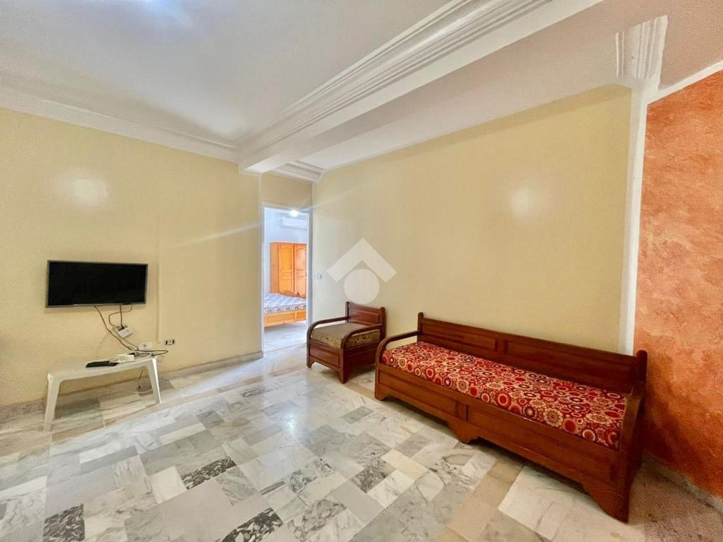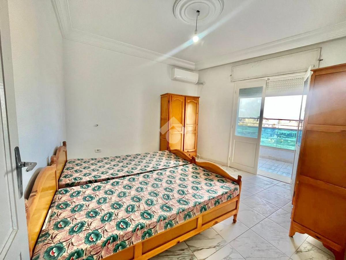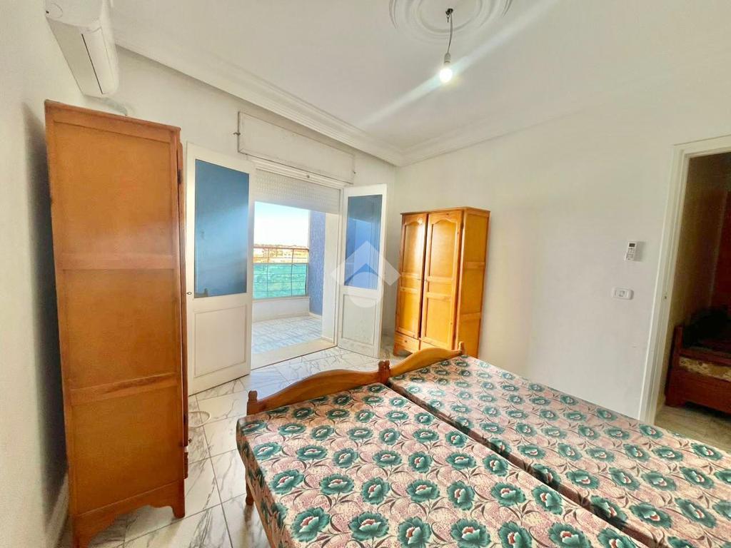 Il s’agit d’un appartement S+2 semi-meublé situé au 3 étage d’une résidence sécurisée avec ascenseur. Il se compose d’un salon équipé d’une télévision plasma, de deux chambres ou la première avec deux lits, un petit dressing, un climatiseur qui donne accès à une terrasse, la seconde avec deux lits . Ainsi, il s'agit d’une cuisine ouverte sur le salon entièrement équipée.