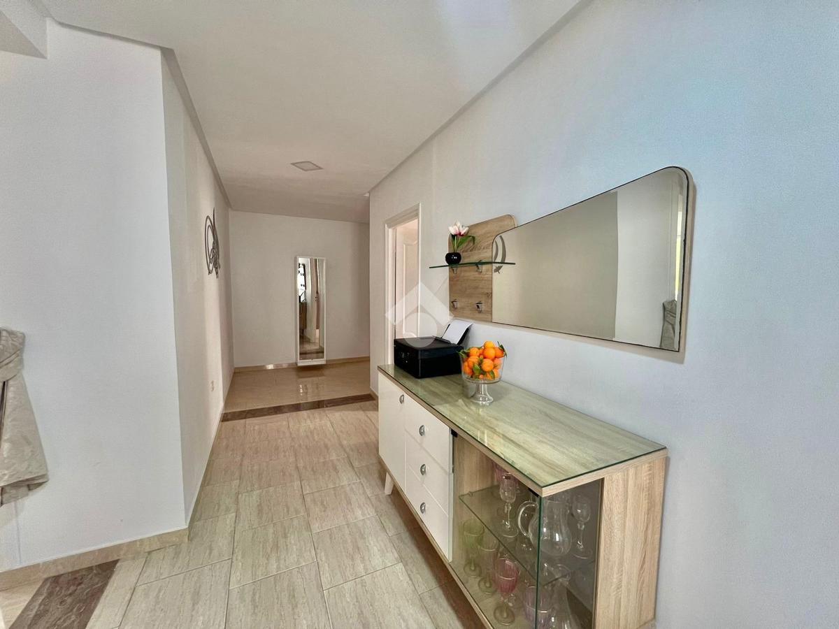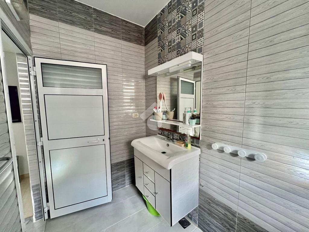 En entrant par l’accès secondaire, on découvre un spacieux salon ouvert sur une terrasse offrant une vue dégagée sur la mer. À droite, se trouve une chambre à coucher, en face d’une cuisine lumineuse et entièrement aménagée.